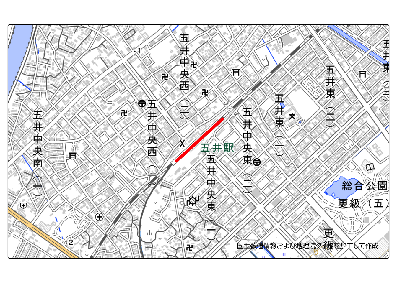 tm_shape(bbox = bb(URLencode("五井駅"), width = 0.02, height = 0.01)) +